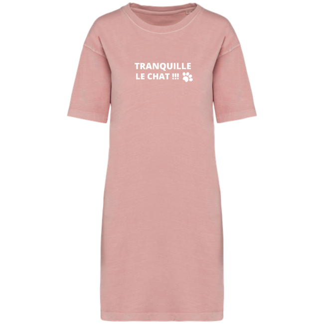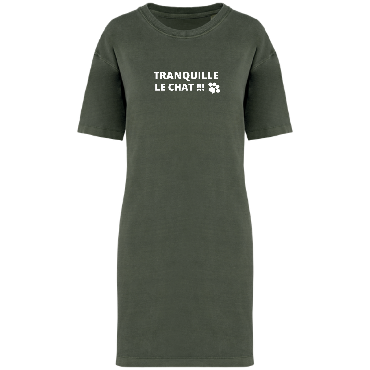 Robe T-shirt Femme Tranquille le Chat Kaki Organic