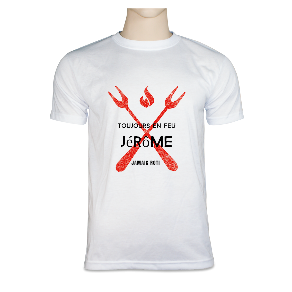 T-shirt Blanc Unisexe Toujours en Feu Jamais Rôti