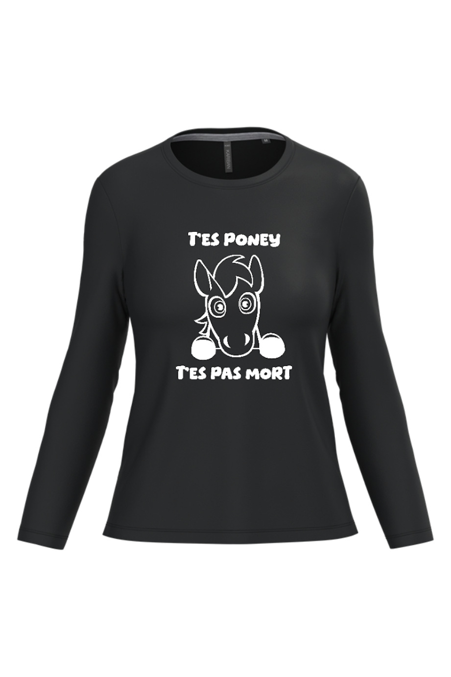 T-shirt Femme t'es Poney Blanc Manches Longues