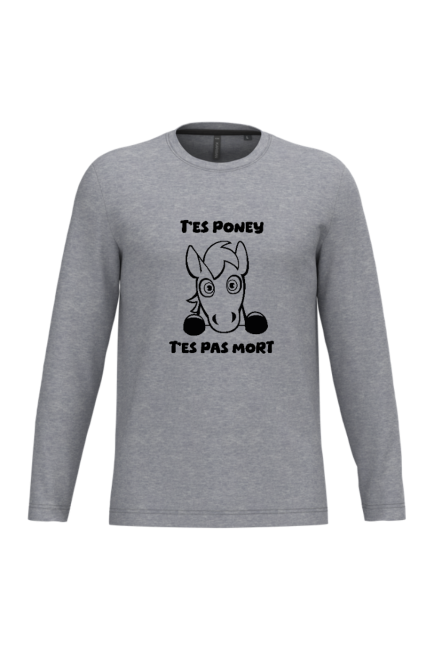 T-shirt Homme T'es Poney Gris Manches Longues